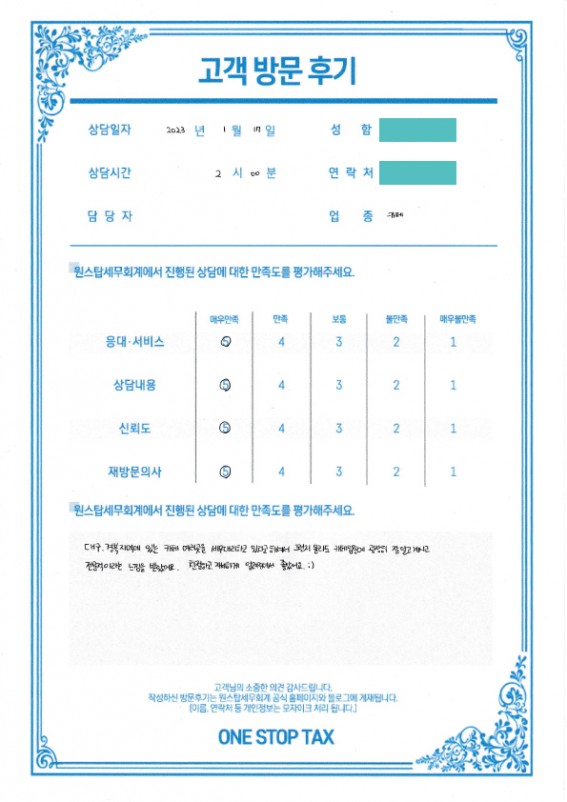 원스탑세무회계에서 상담 받으신 분들의 후기입니다.