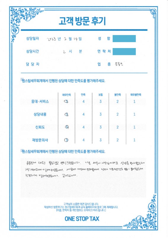 원스탑세무회계에서 상담 받으신 분들의 후기입니다.