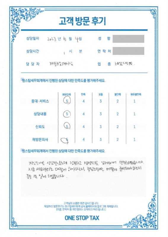 원스탑세무회계에서 상담 받으신 분들의 후기입니다.