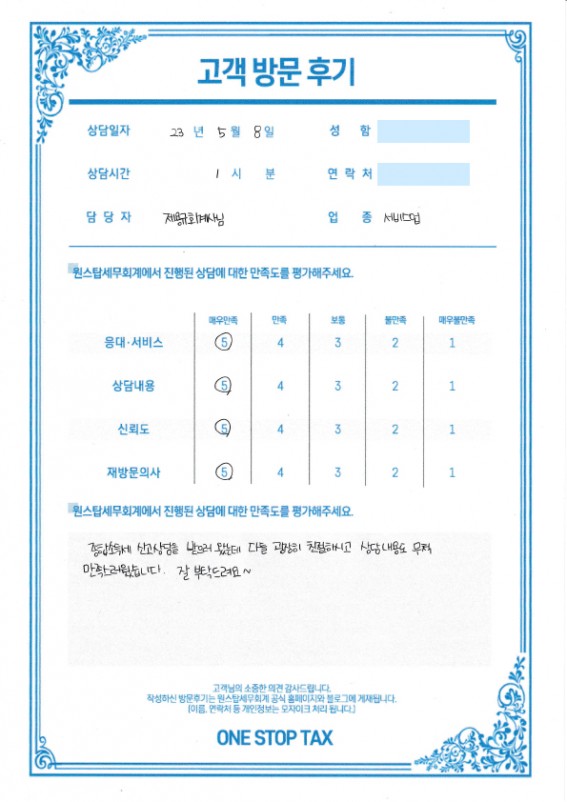원스탑세무회계에서 상담 받으신 분들의 후기입니다.